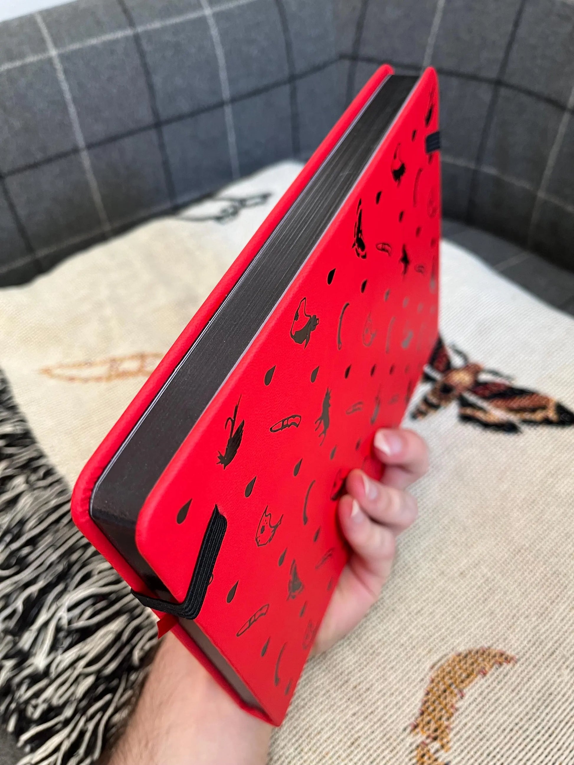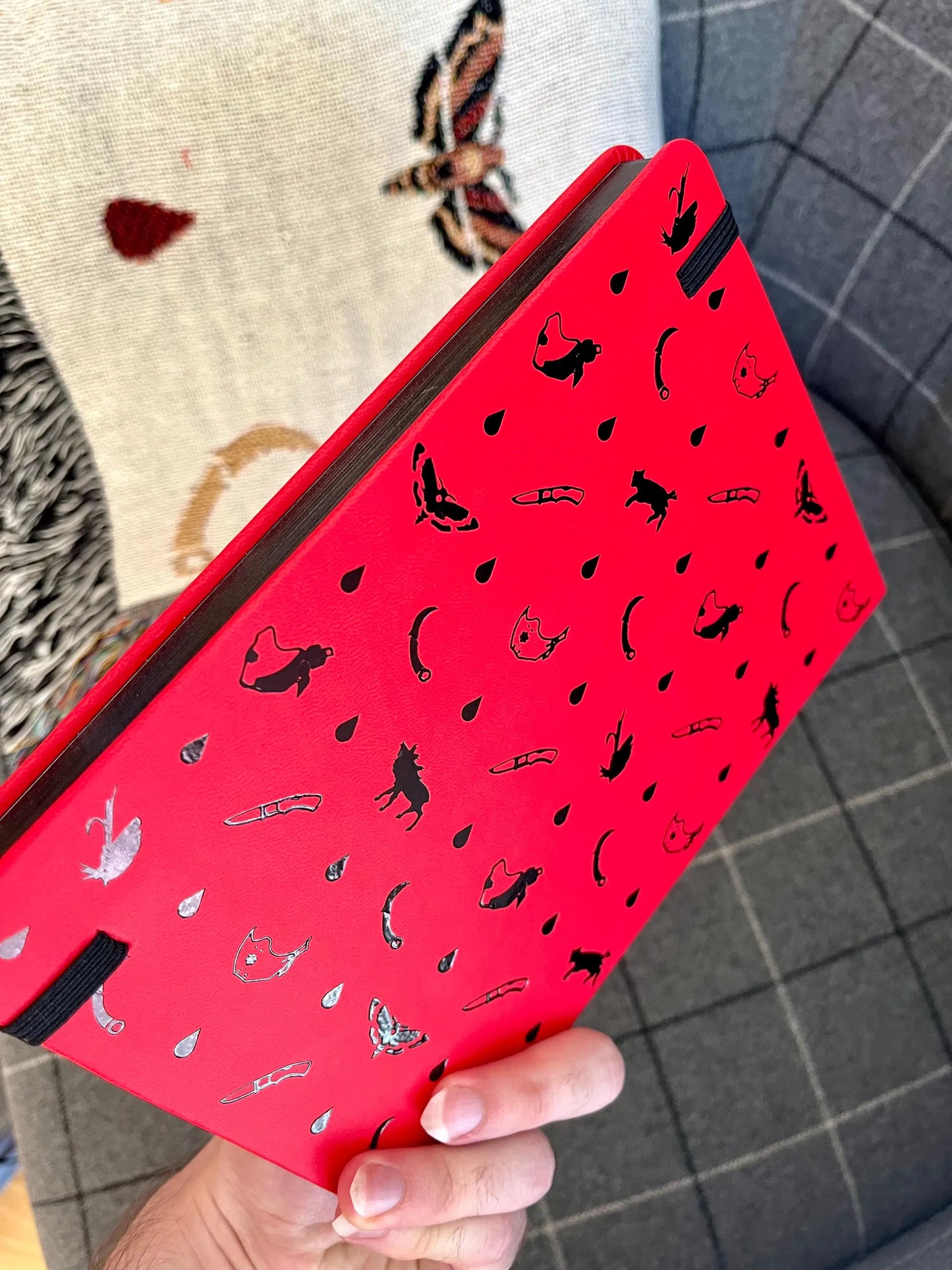 A Hannibal inspired notebook/sketchbook featuring black foil edges and black foil stamped motifs across the cover.