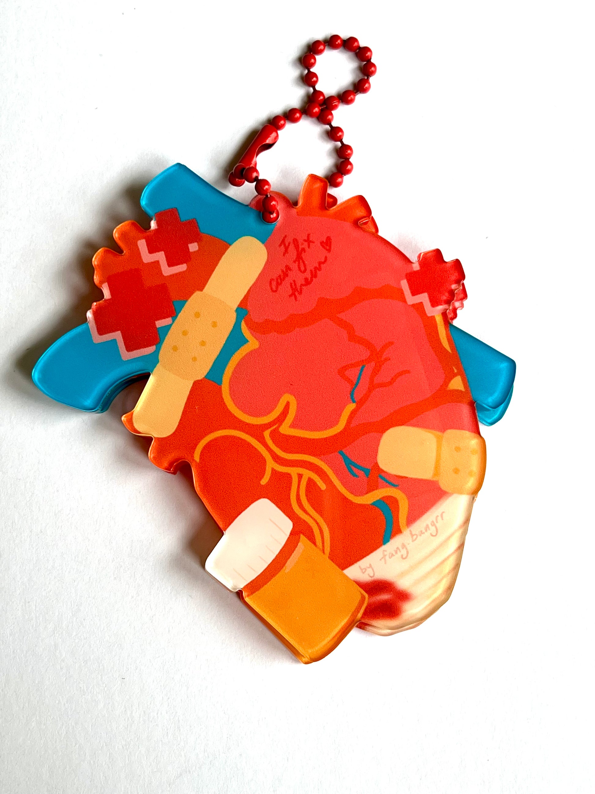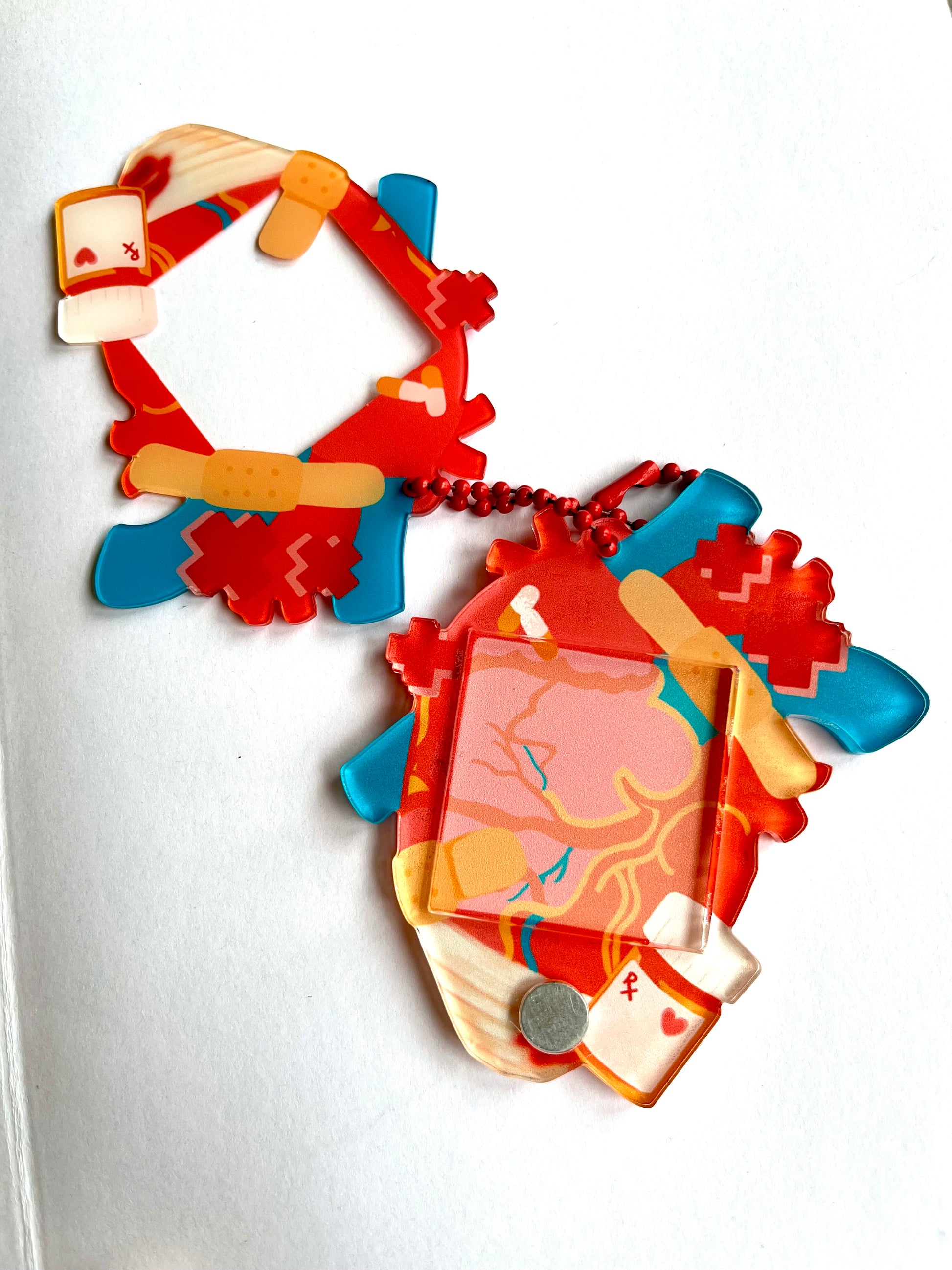 3" acrylic photo holder with inner magnet closure and red ball chain. Fits 1.5x1.5" photo!