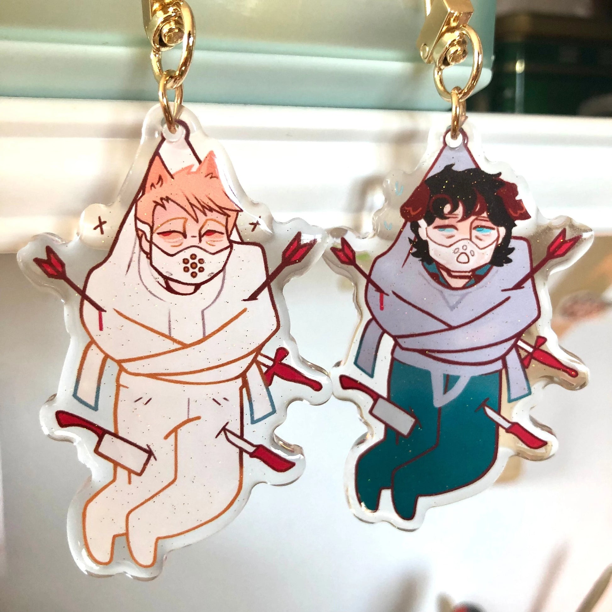 Hannibal Kitty + Puppy dangling glitter epoxy charms