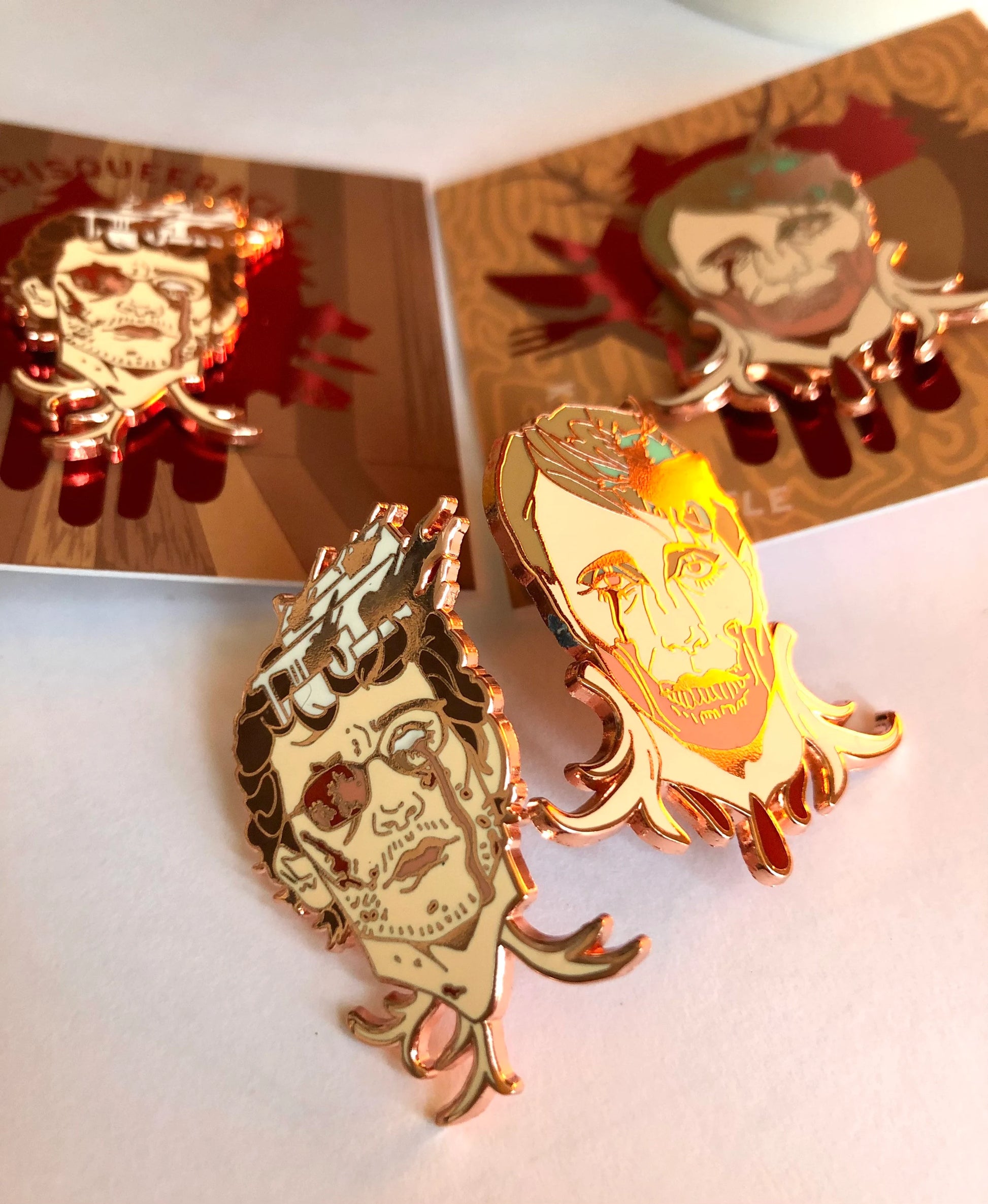 Pins are busts of each character, with elements from the show such as Will's house in Wolf Trap and the Ravenstag.