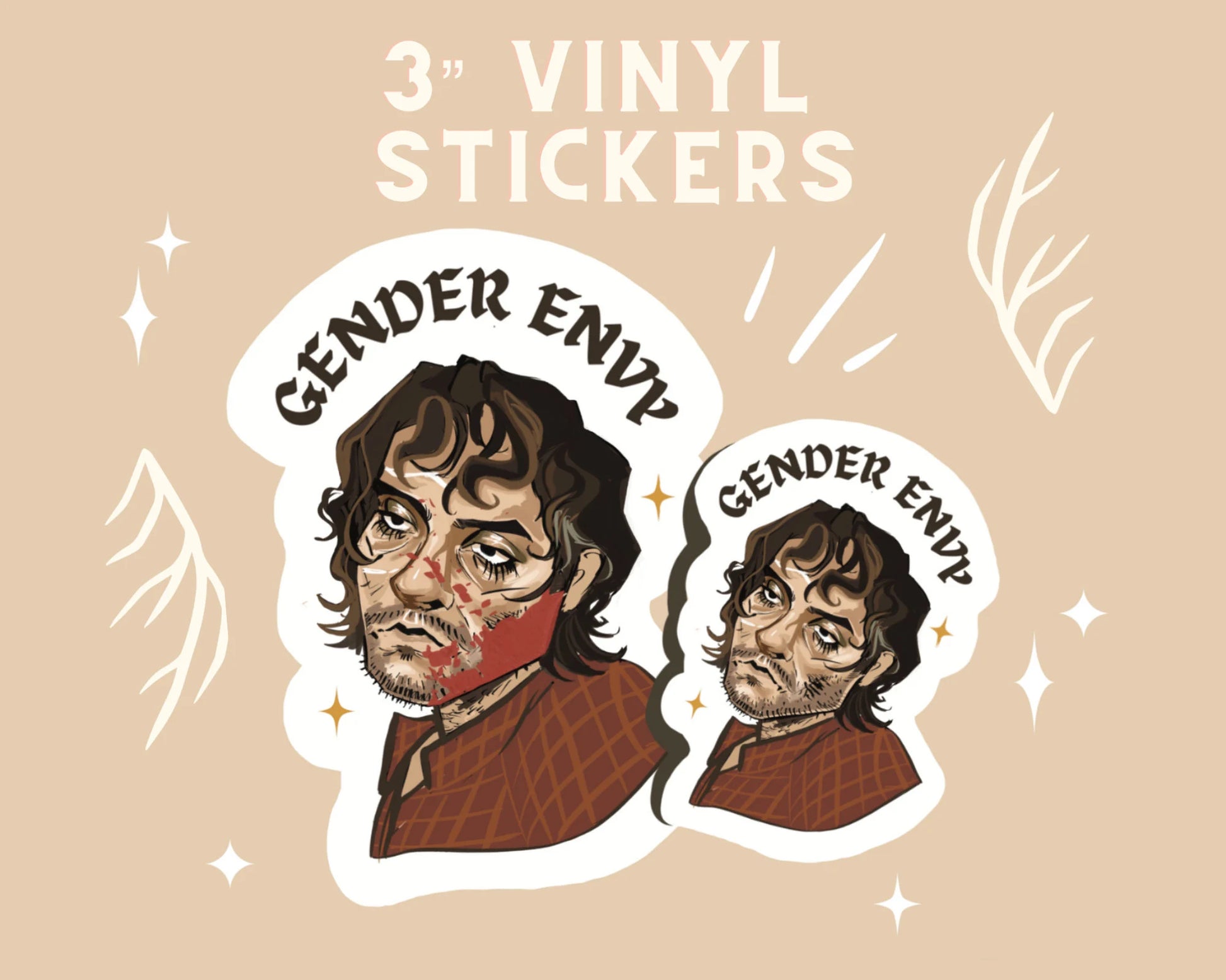 3" vinyl stickers of the king of gender envy, Will Graham---available with or without blood.